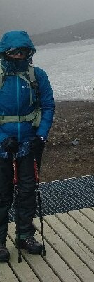Breakfast is strong coffee, porridge and bread with whatever fat laden/sugary spread you opt for. I choose the butter. Then we have to make sandwiches for lunch from a similar selection of foodstuffs as the previous day. Our guide (Solvi), advises the group that it is best to take an extra sandwich (for energy). Once everything is put away after breakfast we get ready to depart. One by one we kit up, boot up and step out of the hut. By this stage the visibility has reduced such that you can no longer see across the valley. I turn the smart phone off, wrap it in plastic and place it inside my jacket-for warmth, as there is no point in trying to use it.