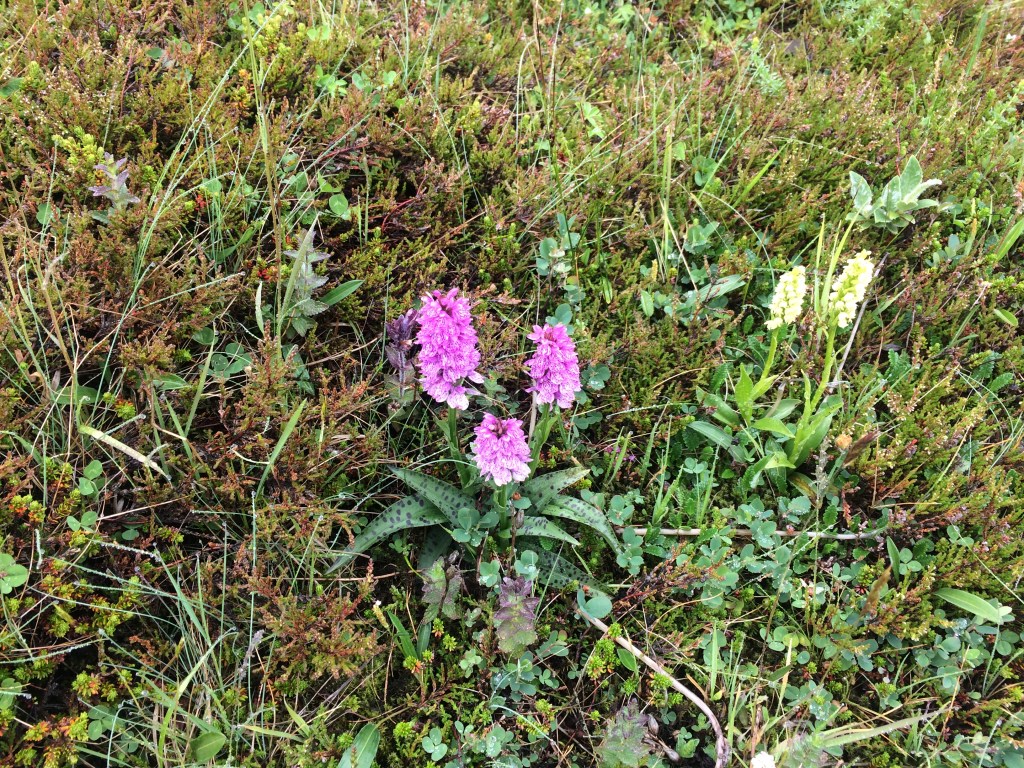 We set off for a short trek up nearby Mount Valahnuker, with Solvi (our guide), leading the way. Initially we ascend through a patch of birch forest before the vegetation begins to rapidly thin out. Some alpine orchids are spotted and this distracts the members of the group who are into taking photos of the vegetation. So what is better than one alpine orchid? Two different types of alpine orchids!