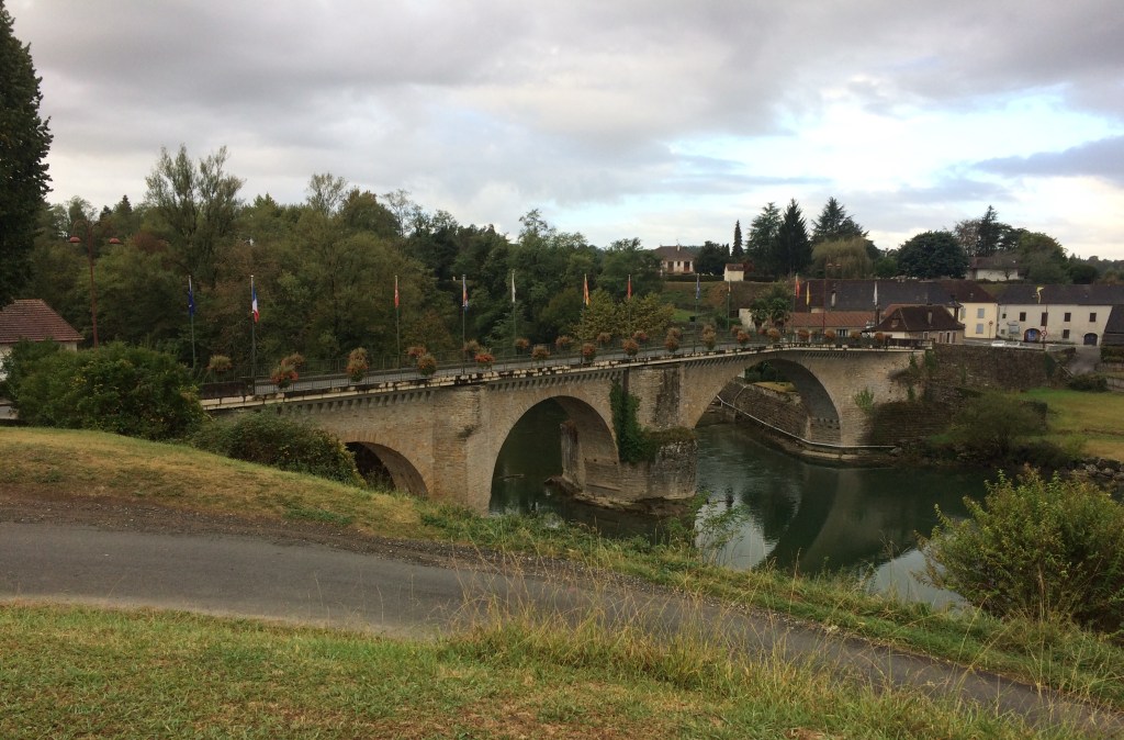 The route close to Estaing was memorable for some of it being along a road where it was essential to be fully traffic aware. The vehicles pass by really close at times and they did not slow down either! Then I had to navigate the narrow one lane medieval bridge into the town. A good time to cross the bridge is during the 2 hour lunch break because there is far less traffic at that time! However I will never forget sitting outside an eatery in Estaing comparing notes with other hikers and watching large trucks (or tractors) navigating the narrow streets. One tip, if you book accommodation near the main road which passes through Estaing then be prepared for vehicle noise through the night!