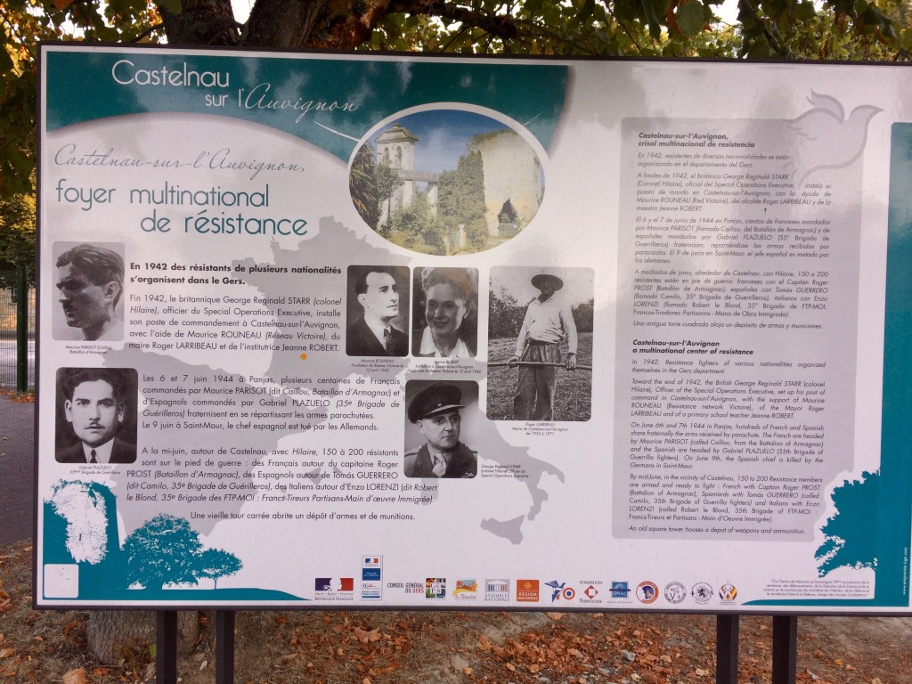 The early morning starts continue, with there sometimes being mist as I set off in the half light. I pass some more ponds which contain either croaking frogs or frogs making a rapid exit to safety hence avoiding being photographed! They are too quick for me. Every now and then I passed another poignant reminder of French history and this was very much the case in Castlenau sur L’Auvignon where there are multiple plaques outlining how the village was ransacked in World War 2.