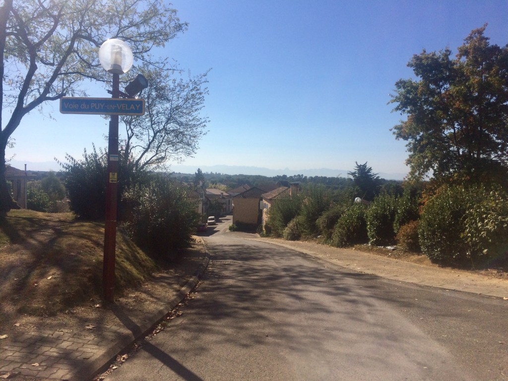 The days were usually very warm by mid morning and I can remember descending into the small village pictured below via the aptly named Voie du Puy en Velay, knowing that this was where I could find potable water! You can see how bright the sun is by the hazy appearance of the photograph below. Glimpses of the Pyrenees were now becoming commonplace from the various hill top vantage points.