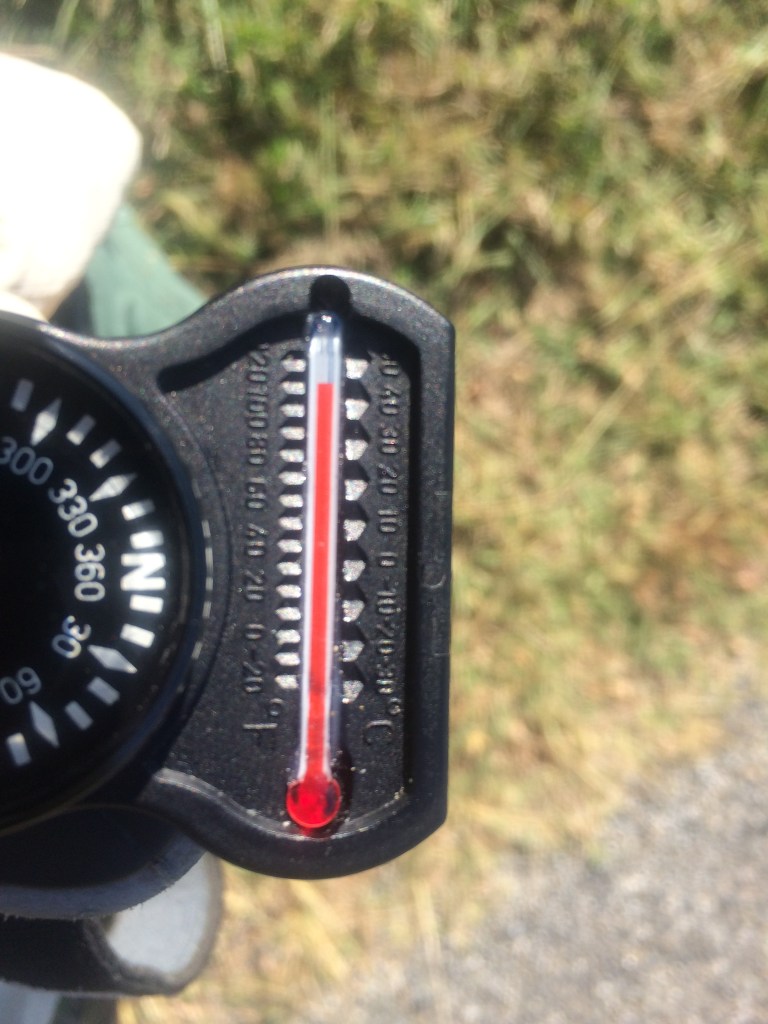 It was really hot at times and on my toughest day it was 42C (yes this reading is correct) for a period, which was measured whilst walking along a bitumen road in a valley with there also being no breeze. Hence why I was stopping at every church where there was potable water (and at times making up another litre of Hydralyte). I had learnt to measure the ambient air temperature to help gauge how much fluids I should be taking in.