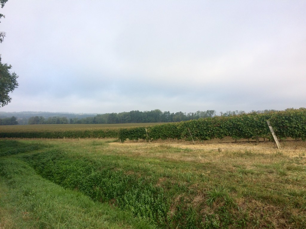 Then there was the welcome pop up stand near a farm with hot coffee and prune gateau on offer. This is why it was useful to carry some loose change along with low denomination Euro notes. However I still had to be careful of the nearby wasps because I did not need any more wasp stings. Plus I was nursing a bruised knee and a slightly corked thigh from the previous tumble whilst crossing a bridge over the Garonne river! However there were still views to be had in between what were largely empty fields (because most of the crops had been harvested).